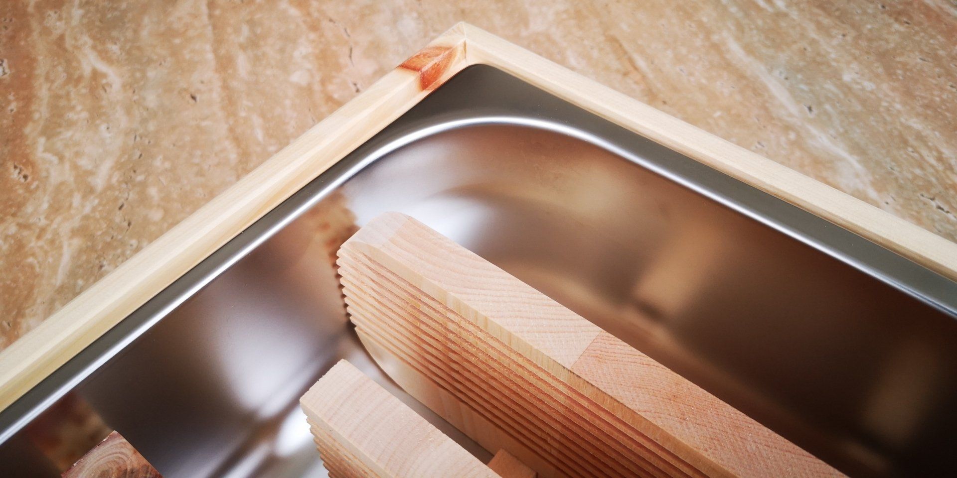 aus hochwertigen Zirben-Kernholz mit sehr hohen Pinosylvinanteil gefertigt.